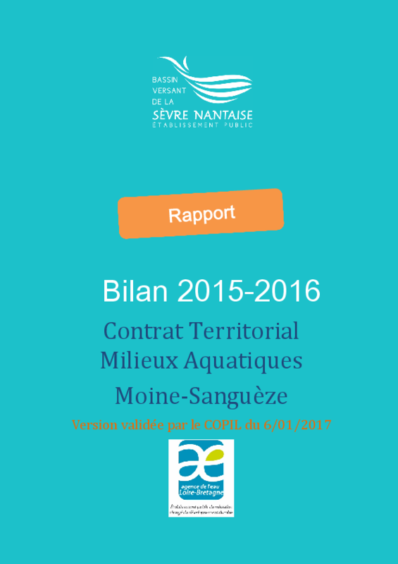 Bilan 2015-2016 du contrat territorial milieux aquatiques Moine-Sanguèze : version validée par le comité de pilotage du 06/01/2017 [texte imprimé] / E.P.T.B Sèvre Nantaise, Auteur ; Agence de l'eau Loire Bretagne, Auteur . - [S.l.] : E.P.T.B. Sèvre Nantaise, 2017 . - 22p : ill. ; A4. Langues : Français (fre)
